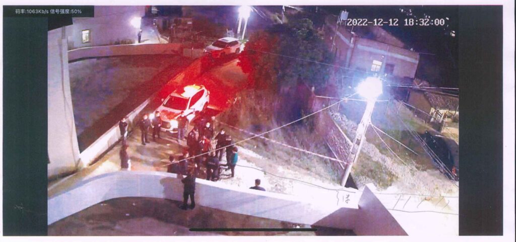 刘作纲方通过提交相关图片、监控录像截图等证据称:2022年12月12日晚,当地派出所到涉事地强行拉警戒线,协助涉嫌强占方在刘作纲方农用地上倾倒沙石泥土、强行硬化。