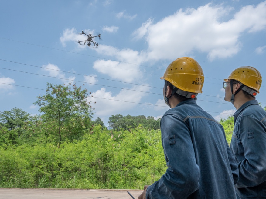 图说:供电人员提前对考场周边线路运用无人机等设备开展巡视消除隐患。摄影/黄海鹏