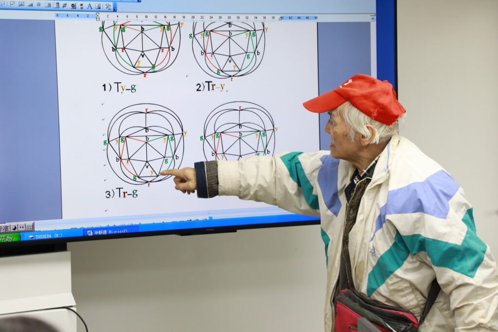 “为筹办这个会,用了两年!”满头银发,一顶红帽子,研讨会的主角董德周情绪满满,准备充分,现场通过学术PPT、出版书籍、旧版专业书等方式向研讨人员讲解了他研究了大半辈子的“四色猜想”。