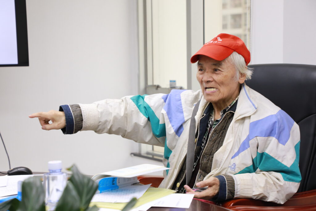 图说:研讨会上85岁的董德周讲解“四色猜想的证明”情绪满满。李春晓/摄影