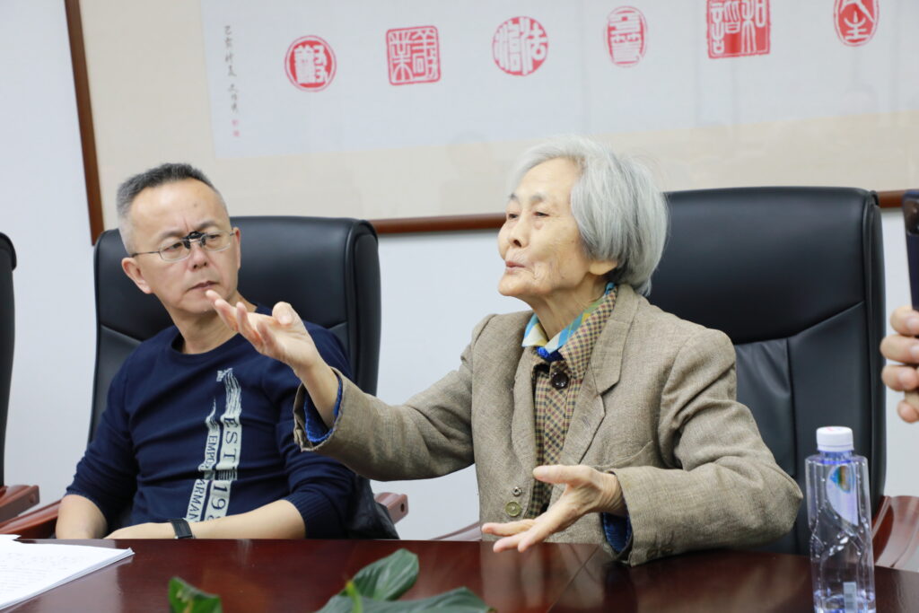 图说:研讨会上,董德周夫人刘燕玲忍不住帮助丈夫补充自己的见解。李春晓/摄影