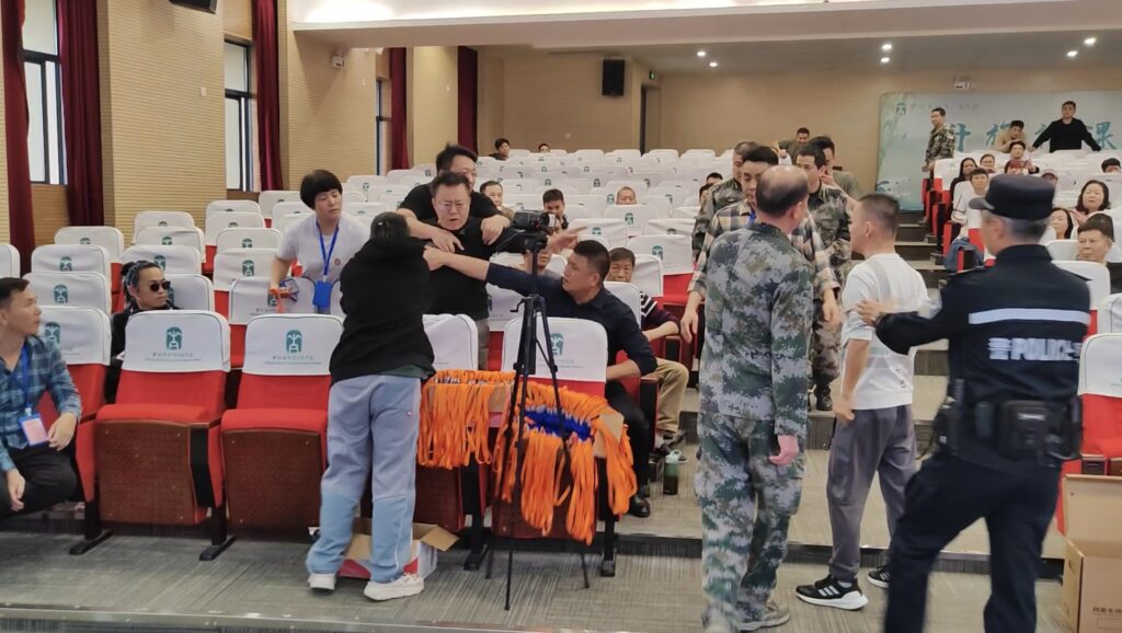 现场候选人梁某文也坐不住了,据反映之前其已经被“内定”为清水河公司新一届董事长,且“高额负债候选人”说得正是他本人。担心事情败露,梁某文现场授意其堂哥和胞亲推搡、辱骂梁荣辉,让梁不要声张。