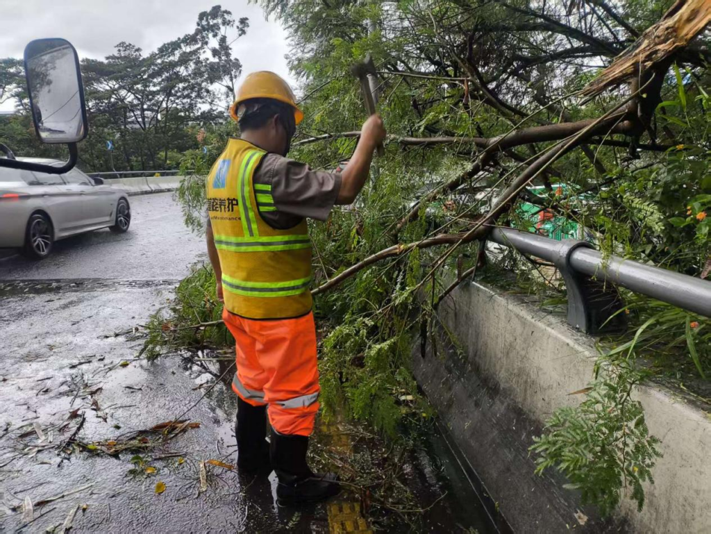 台风影响期间,深圳路桥集团高效清理倒伏树木53处,排查并处置道路积水点16处,及时修复受损交安设施20处,为道路安全畅通筑牢“防护网”。