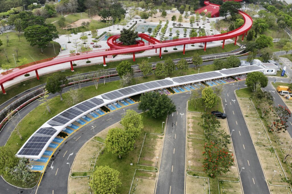 图说:粤港澳大湾区规模最大车网互动超充示范站落地深圳虹桥公园。徐成龙/摄