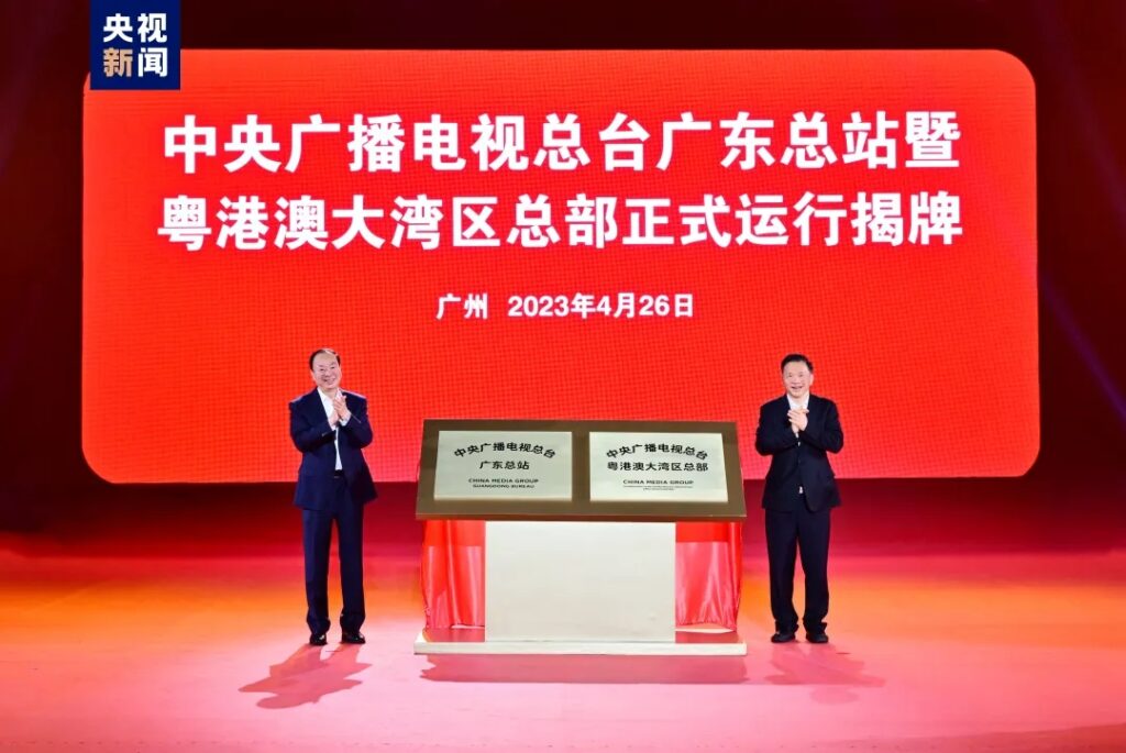 4月26日,中央广播电视总台广东总站暨粤港澳大湾区总部在广州运行揭牌。广东省委书记黄坤明出席,并与中宣部副部长、中央广播电视总台台长慎海雄揭牌。广东省委副书记、省长王伟中出席并致辞。