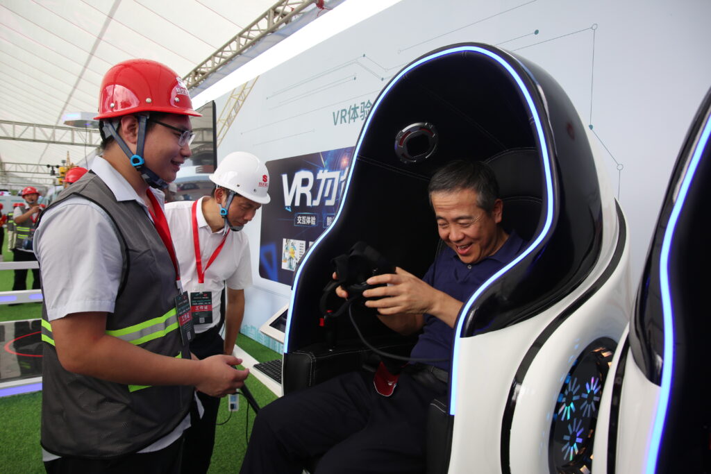 现场观摩人员纷纷带上VR虚拟现实眼镜身临其境感受现场安全作业环境及安全教育内容,通过云平台展现项目工程概况、实时监测数据、工程进展状况、质量安全数据等,感受建筑工地现场全方位、立体化的综合管理应用。