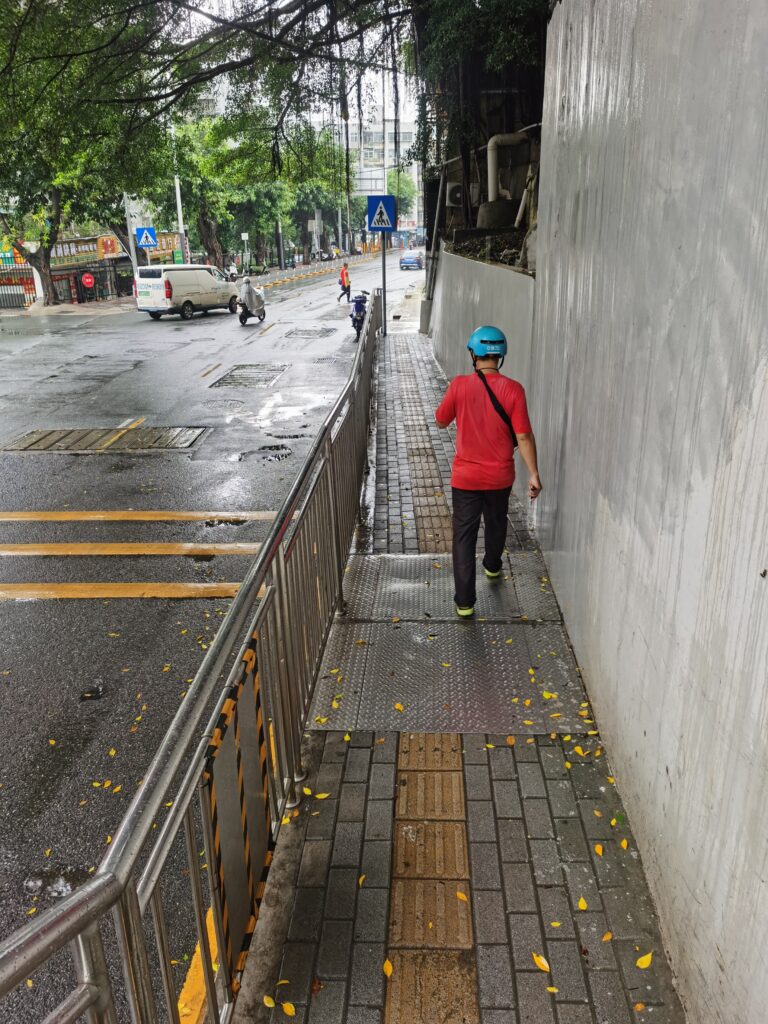 图说:南湾街道这条“鼓皮”小路南高北低,有一定坡度,行人过此小心翼翼。