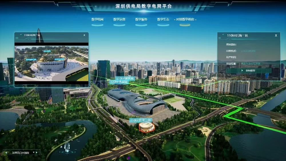 图说:南方电网深圳供电局数字电网平台展现了深圳湾“春茧”一带的城市及电网三维图景。孙蓉蓉/摄影